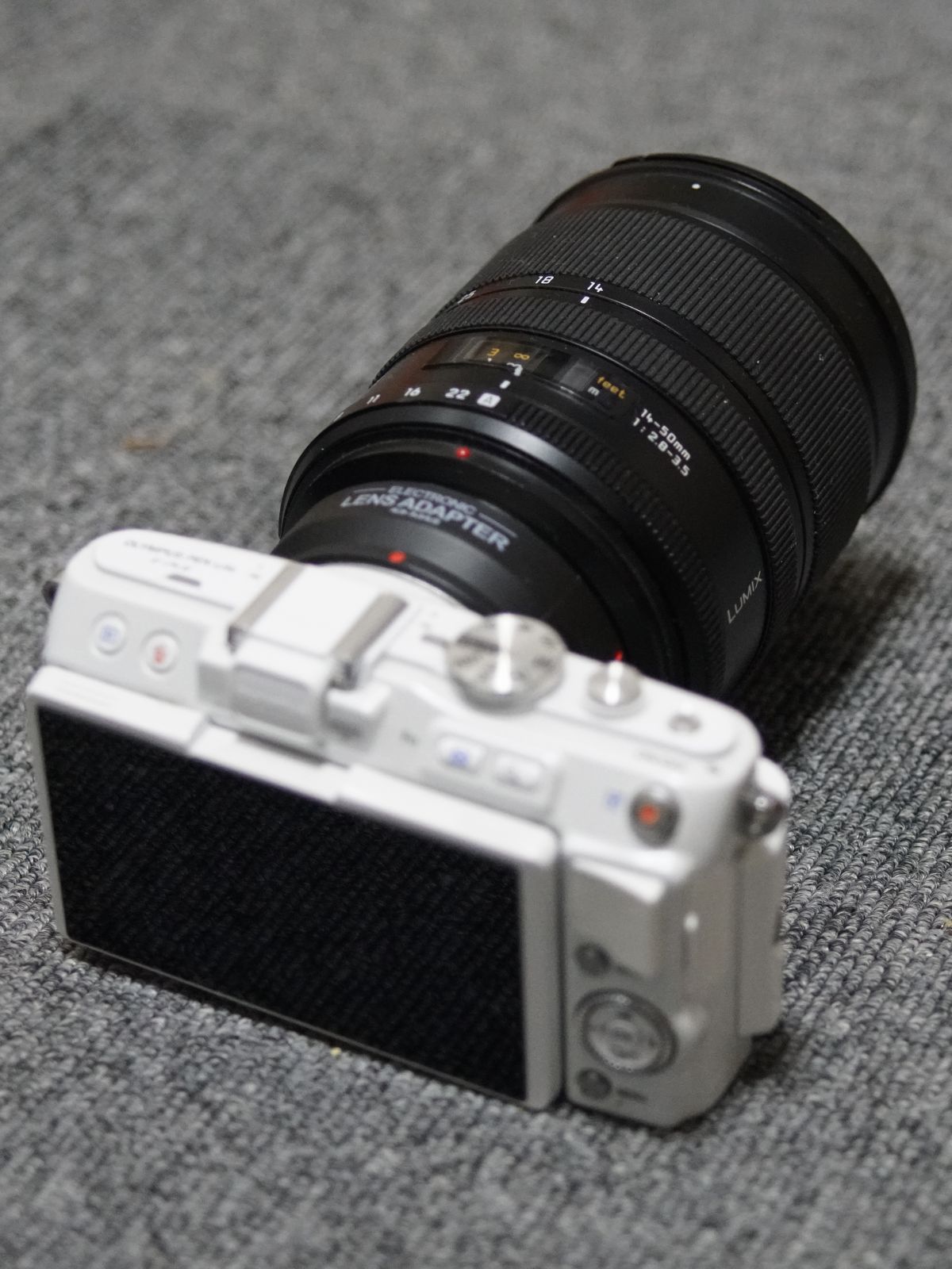 | 中華大陸製の 4/3 ⇒ Micro4/3 変換アダプタ経由での接続です。 電子接点対応なので、カメラお任せで撮影はできるけど、カメラが利口ではない.. ピントはタッチパネルでやるのが基本的な操作体型ではある。 | ||||