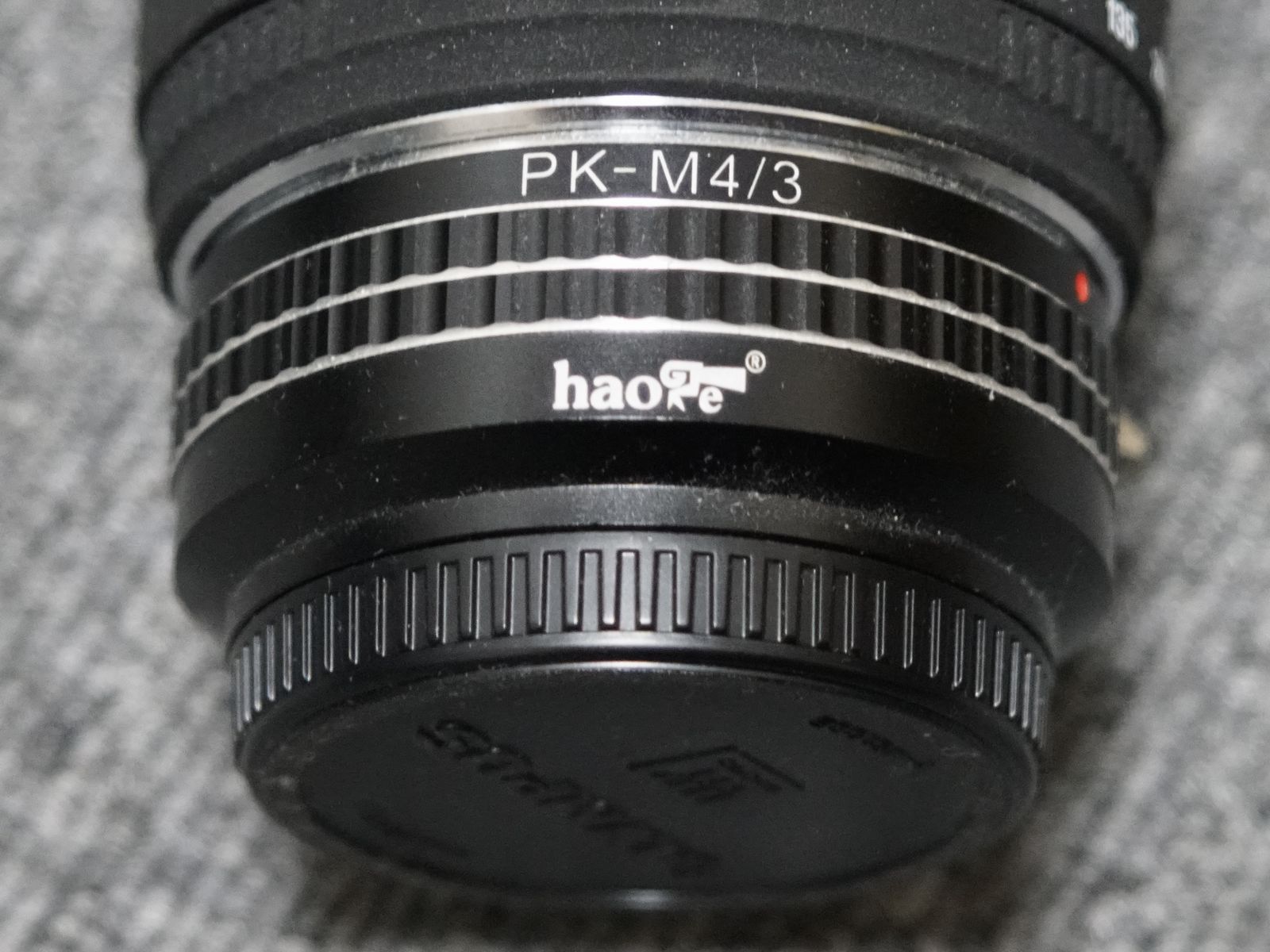 | 電 子接点なしタイプの Pentax-K ⇒ Micro4/3変換アダプタ経由での接続。 絞りの方は全開放固定にしてあります(MFピーキング表示あるので不便は無い) | ||||
