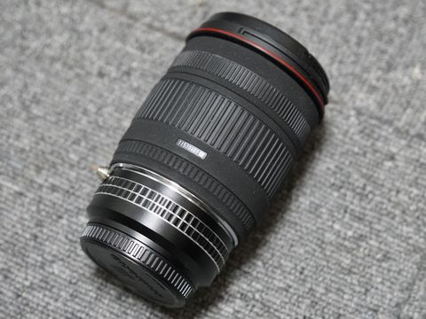 | 電子接点ありタイプの VILTROX EF-M1経由での接続。 フォーサーズ系は口を合わせたところでカメラがレンズを認識しないと(以下略) | ||||