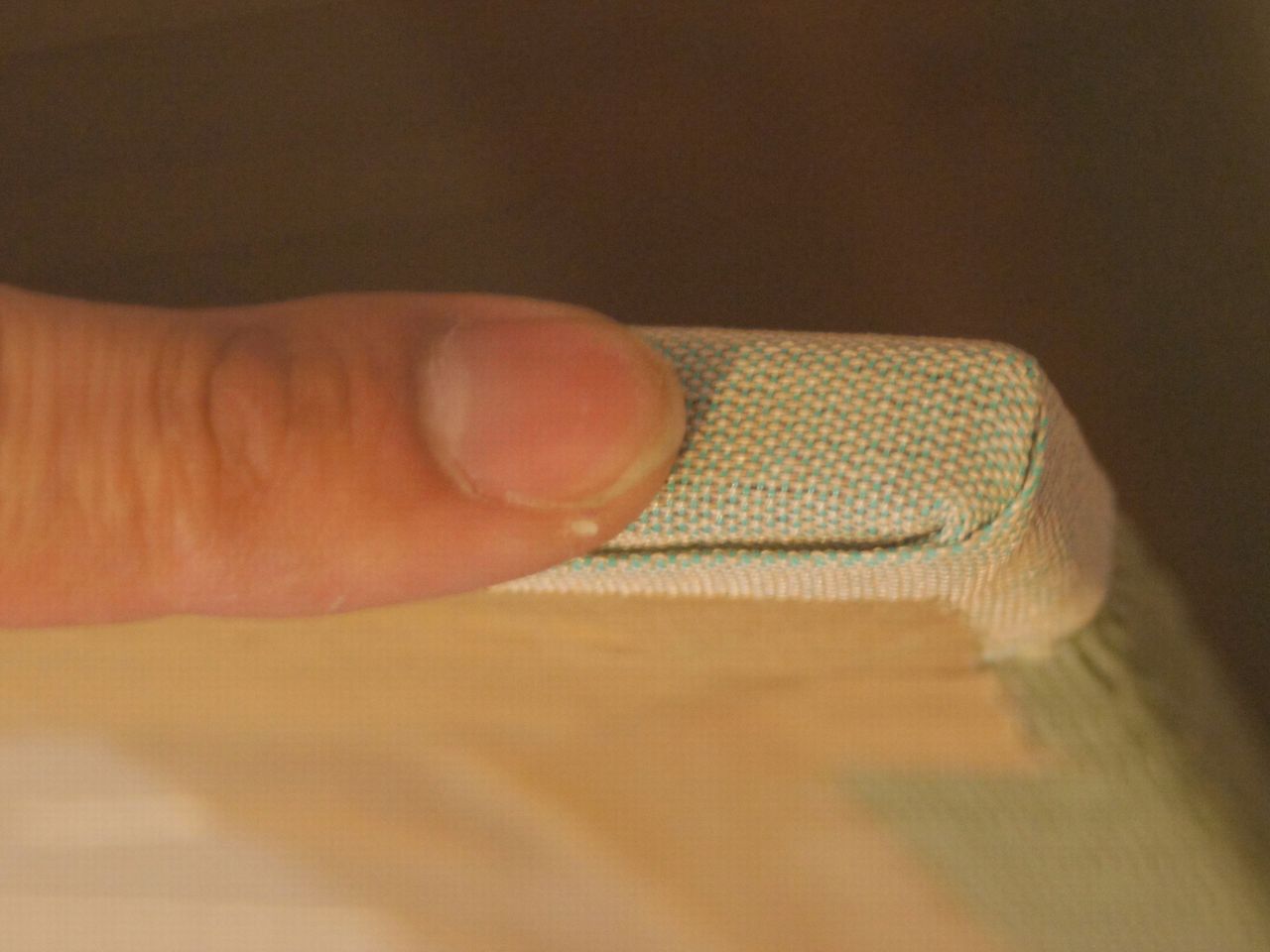 偽畳の厚さは大体指一本ぐらいで2cmはない。体感としての厚みは約15mm位な感じですね。